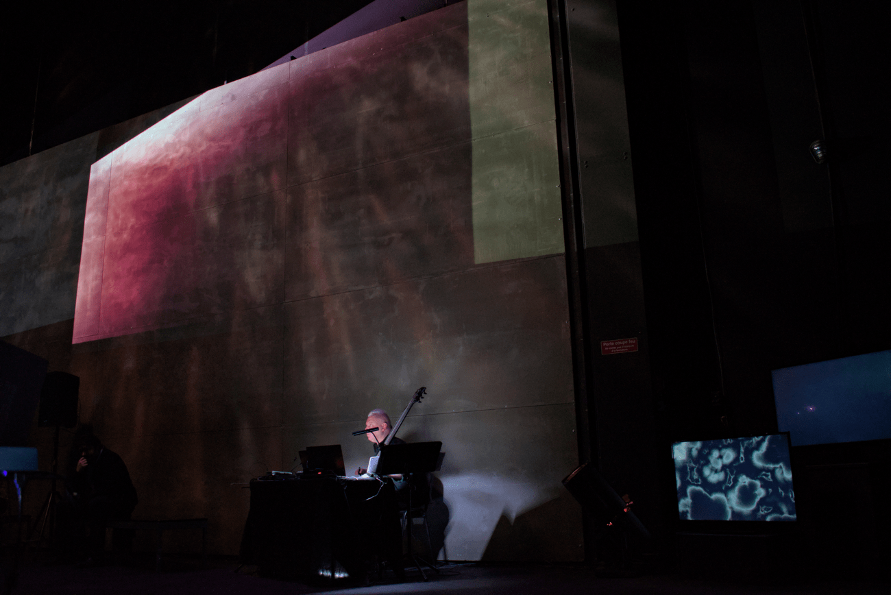 Une forme musicale qui est autant concert qu’installation : dans un lieu «autre» où l’habituelle séparation public-artistes est abolie, les deux étant de plain-pied, proches. > La musique jouée en direct par un petit groupe d’instruments électrifiés et spatialisés est superposée à une dense trame éléctronique, également générée (jouée) en temps réel. > Le lieu est plongé dans une pénombre dans laquelle scintillent des bribes d’images électroniques ou des éclats de lumières, également joués dans le moment du spectacle, comme des instruments à part entière, bien que muets. > Un moment de flottement des sens, presque de stase, librement inspiré par l’idée des «zones mésosphotiques» sous-marines.